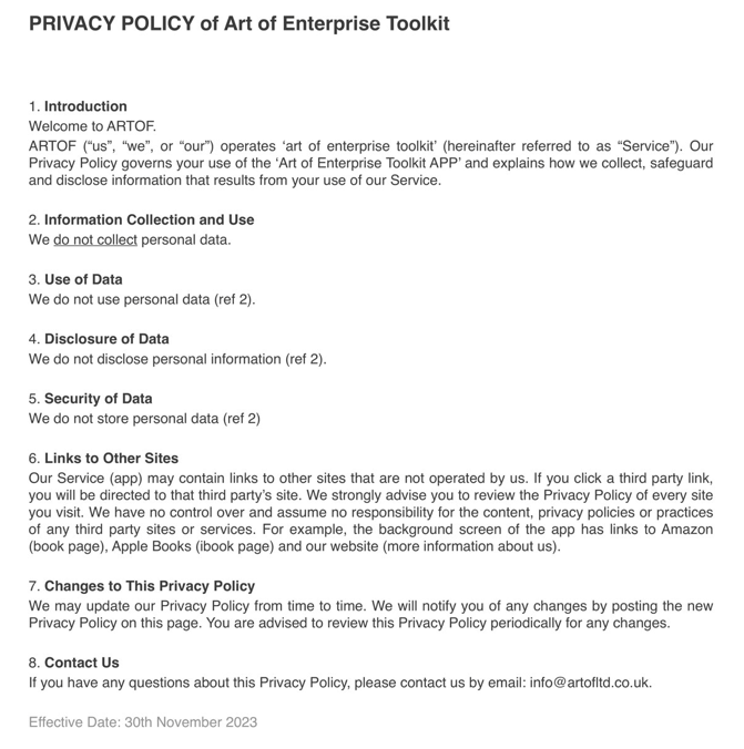 PRIVACY POLICY : art of enterprise toolkit